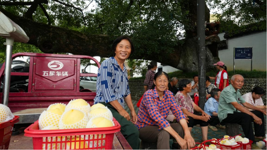 酒香也怕巷子深。为让“石河香蜜”走出山村,驻村工作队瞄准“线上+线下”双渠道,打响品牌知名度。线上,他们主动对接黄山市广播电视台和歙县融媒体中心,详析蜜桃的品种优势——生长在山间沃土,光照充足、山泉灌溉,造就了果肉细腻、汁水丰沛的独特口感;邀请媒体进村拍摄,驻村队员亲自出镜,在镜头前演示采摘、试吃,用“咬一口汁水溅出”的真实场景,让屏幕前的观众直观感受这份甜蜜。