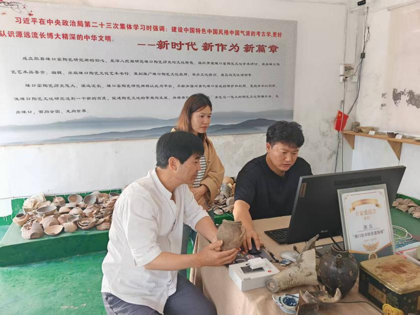 上世纪中叶,歙县桂林镇竦口村北发现了多处唐宋歙州竦口窑遗址,旧窑址出土的窑具残件距今已有1170多年的历史。2020年,桂林镇引进民间陶瓷研究爱好者洪兵,牵头成立竦口窑陶瓷研究所,对竦口窑文化进行收集与挖掘。洪兵在汲取传统瓷器精髓的基础上大胆创新,将现代审美融入器型设计,让千年窑火淬炼出的瓷器既有古韵又含新意。笔者在洪兵的竦口窑陶瓷研究所,看到了很多他新制作的精美陶瓷。近日,桂林镇工作人员上门为洪兵的作品进行版权登记。工作人员逐一对瓷器进行拍照,并耐心指导他在版权登记平台上填写作品信息,完成上传操作。