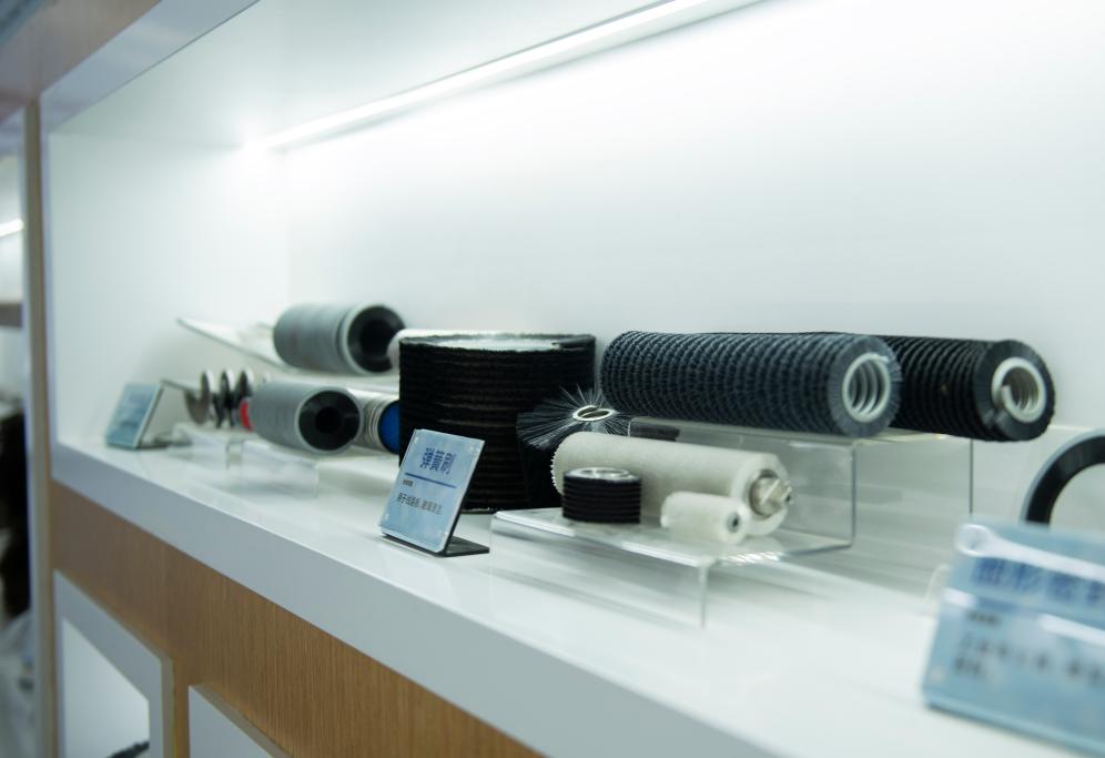到了安庆,到了潜山,“源潭刷艺小镇客厅”是必到的打卡处。家庭清洁的软毛刷、防静电的鸵鸟毛刷、兼具导电功能的碳纤维毛刷、用于光伏面板的清洁刷……从家用到企用、从清洁到抛光,成百上千、功能各异的刷子,整齐摆放在展厅里。